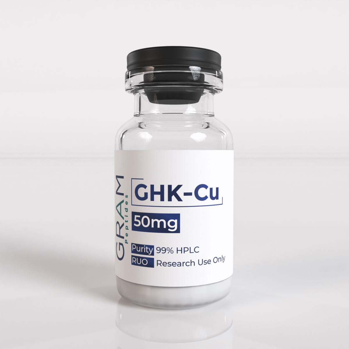 GRAM Peptides compounds GHK-Cu using USP-grade raw materials in an ISO-compliant sterile environment to ensure consistent quality and purity for advanced research.